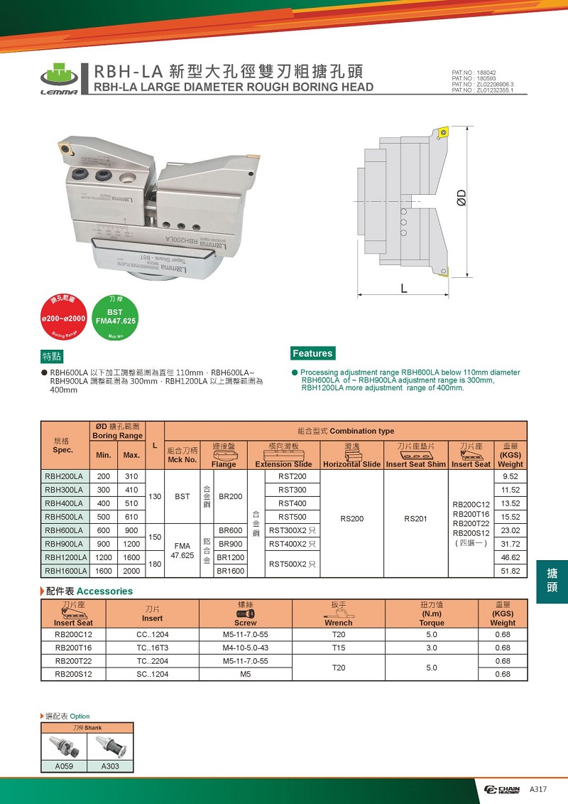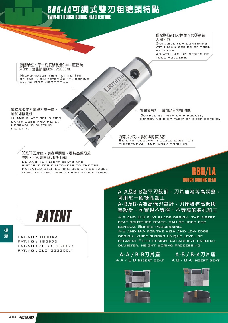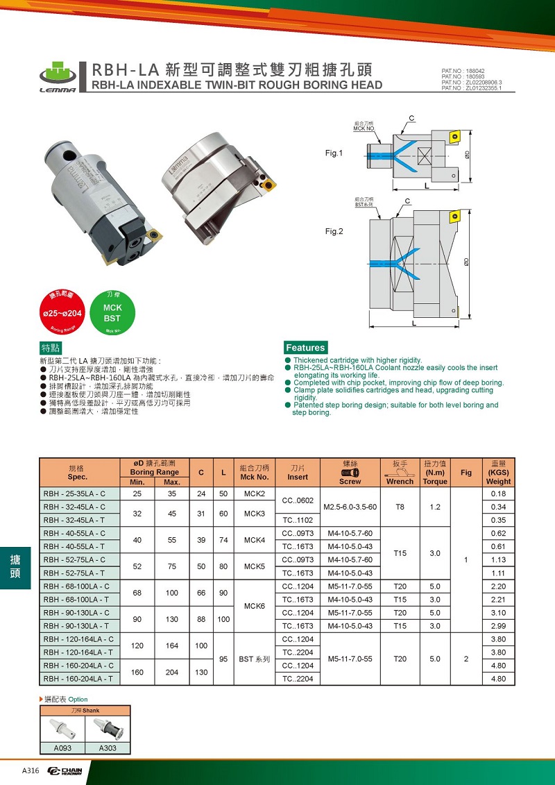 新型第二代LA鏜刀頭增加以下功能: