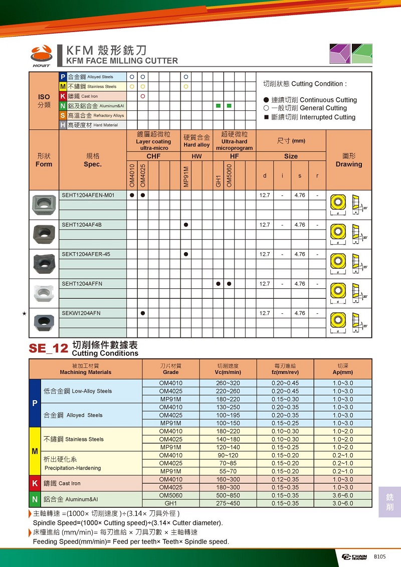 KM45°殼型銑刀