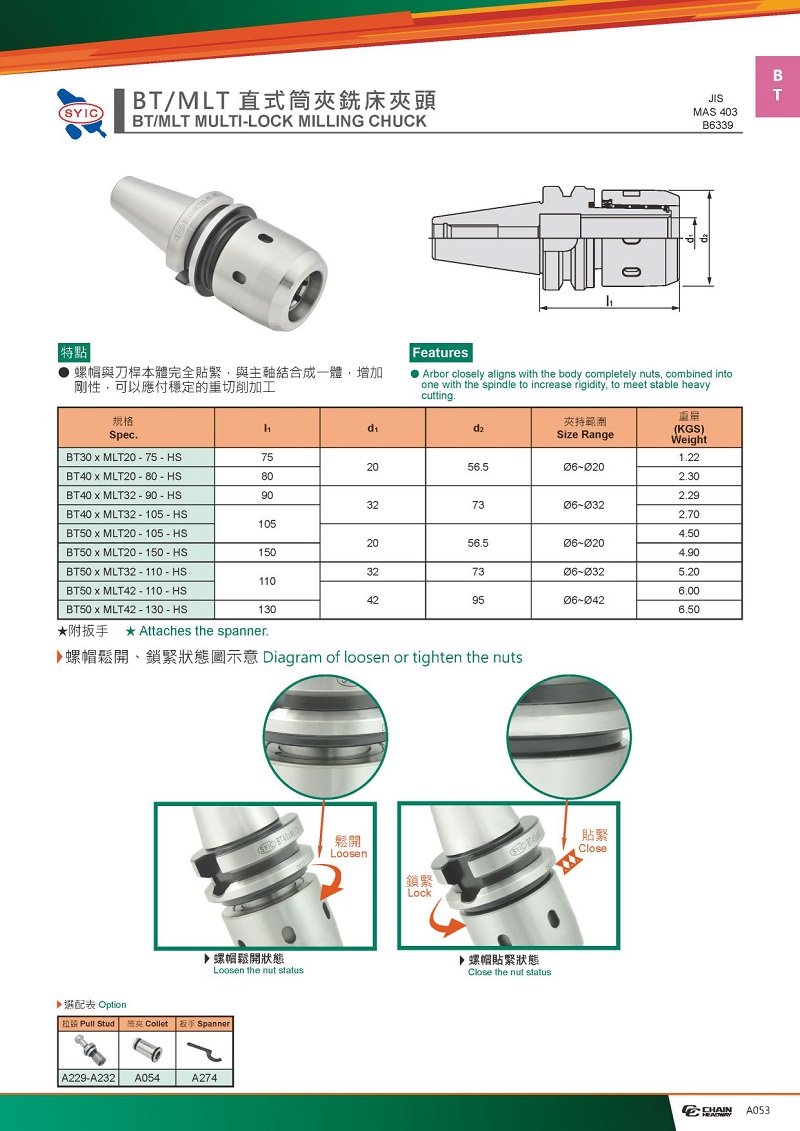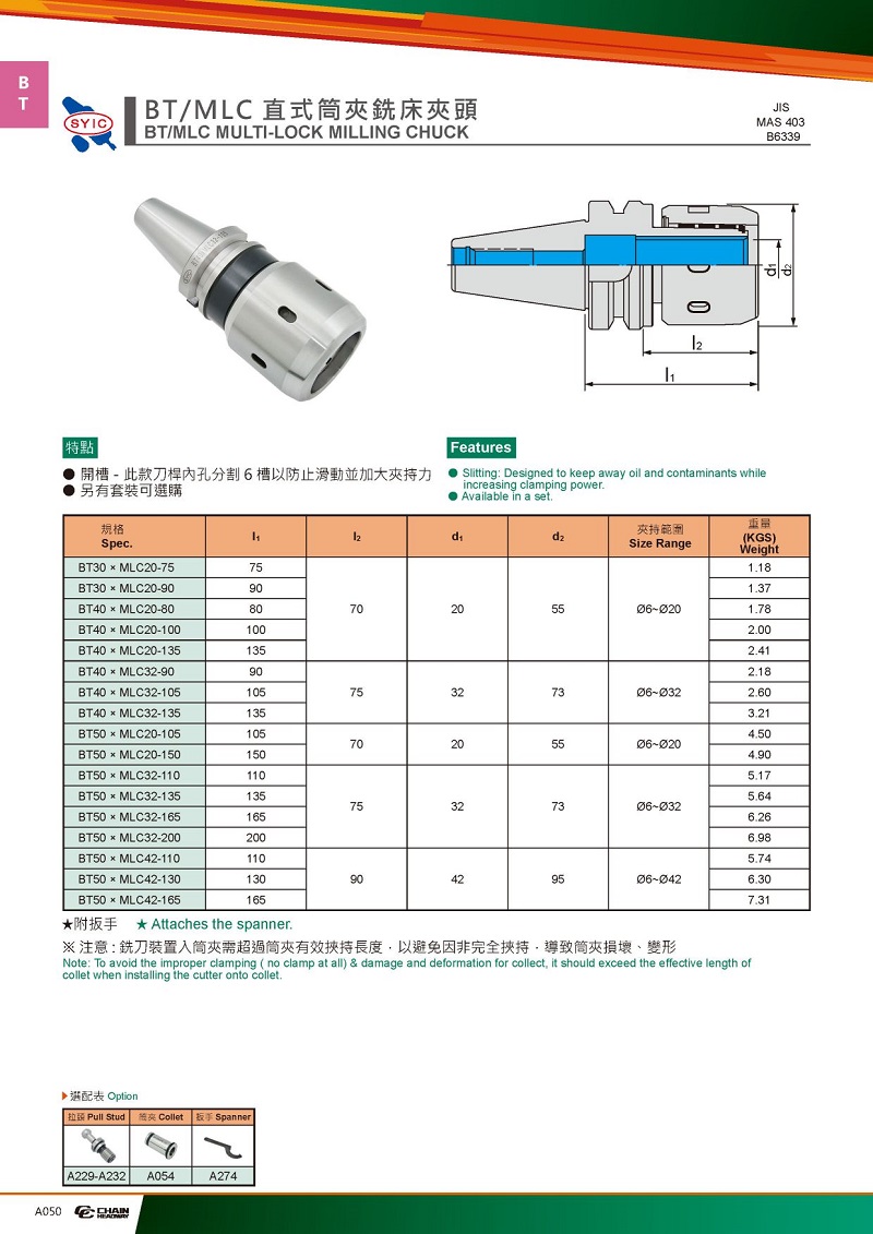 2.MLT螺帽與刀桿本體完全貼緊,與主軸結(jié)合成一體,增加剛性,可以應(yīng)付穩(wěn)定的的重切削加工;