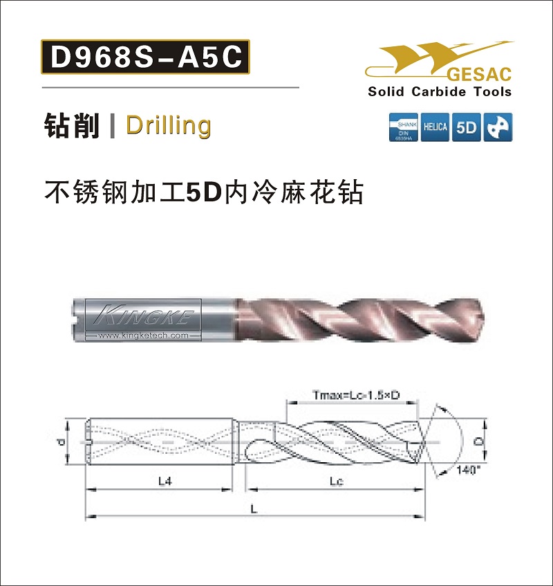 D968-A3C不銹鋼加工5D內(nèi)冷麻花鉆