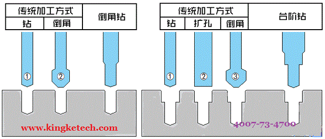 1.臺階鉆,一個或者幾個臺階一次性完成鉆頭,擴寬,倒角等;